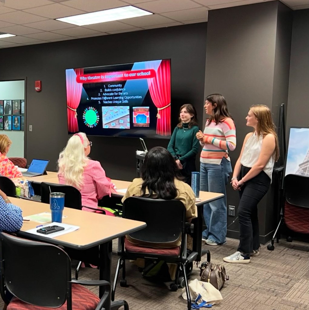 I am an Alabama State Thespian Officer or STO. The STO board is the student voice for Alabama Thespians. As an STO, I act as a representative of the organization by planning events like Alabama Thespian Festival, writing letters to government representatives, and appearing on Social Media. I was selected as an STO on February 14, 2023 and put on the Social Media Team. This team manages the student Instagram and content for the website. I was selected for the board again for the 24-25 season and served on the Advocacy Team. I connected with student leaders, and Educational Board Members across the state to advocate for Theatre Education in Alabama. For the 25-26 season I was selected to be on the Festival Team. For this team I will help with the organization of the festival, events during the festival, and our merch table. As an STO, I have also taught numerous workshops with my peers such as: